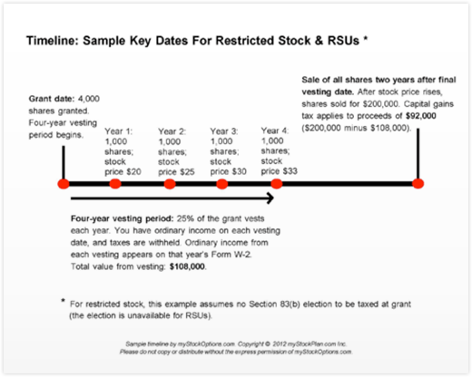 Example Of RSU Life Cycle: The following hypothetical example outlines the entire life cycle of an RSU grant. It is important for you to contact your tax advisor about the impact of these events on your taxes.